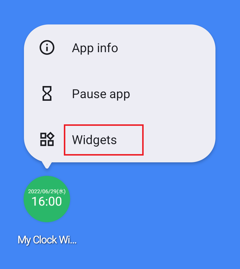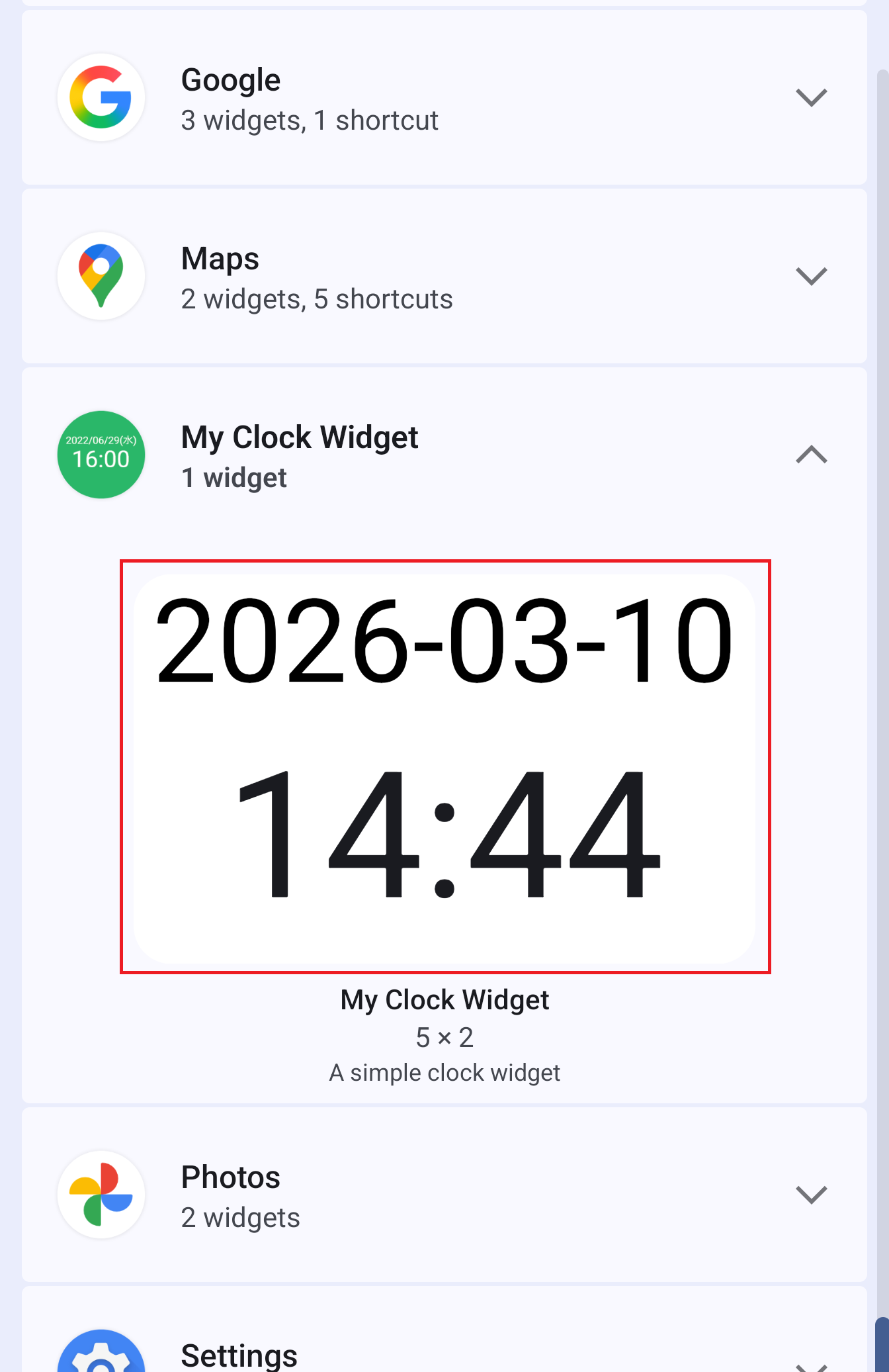 Tapping the widget or the app icon opens the settings screen where you can customize the appearance of the clock.